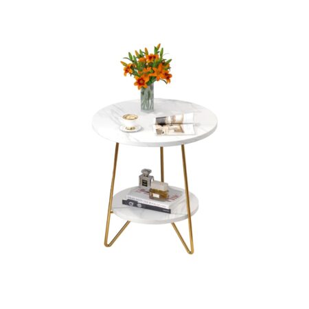Lustrous Golden Powder Coat Finish: The base of the side table is adorned with a luxurious golden powder coat finish.