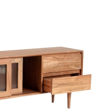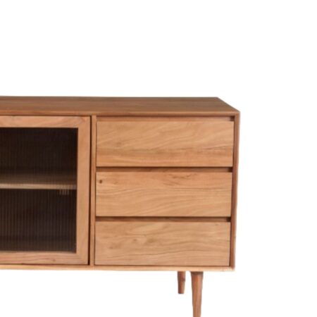Media Cabinet With 3 Drawers And Sliding Glass Door