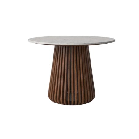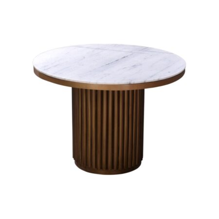 Round Centre Table With White Marble Marble And Honey Brown Colour
